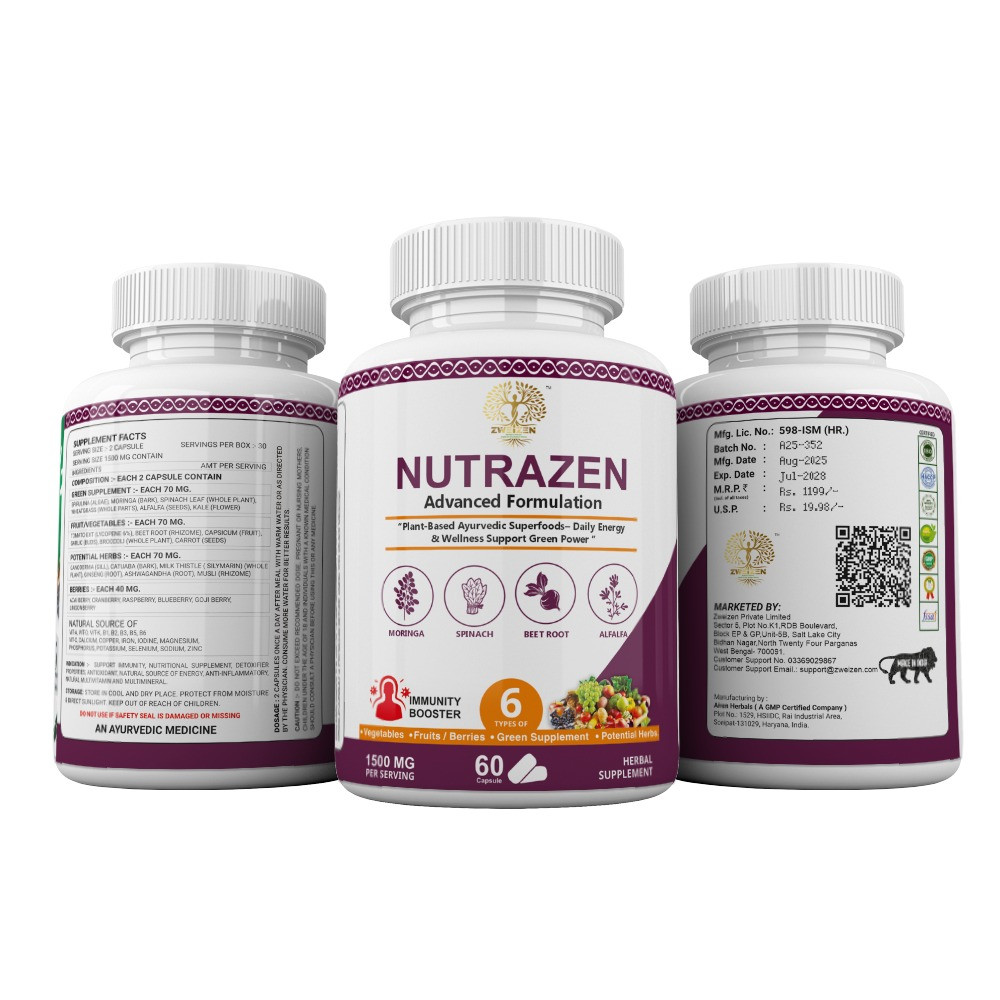 NutraZen—a unique plant-based Ayurvedic superfood capsule designed to deliver the power of greens, fruits, berries, and herbs in a convenient daily supplement.